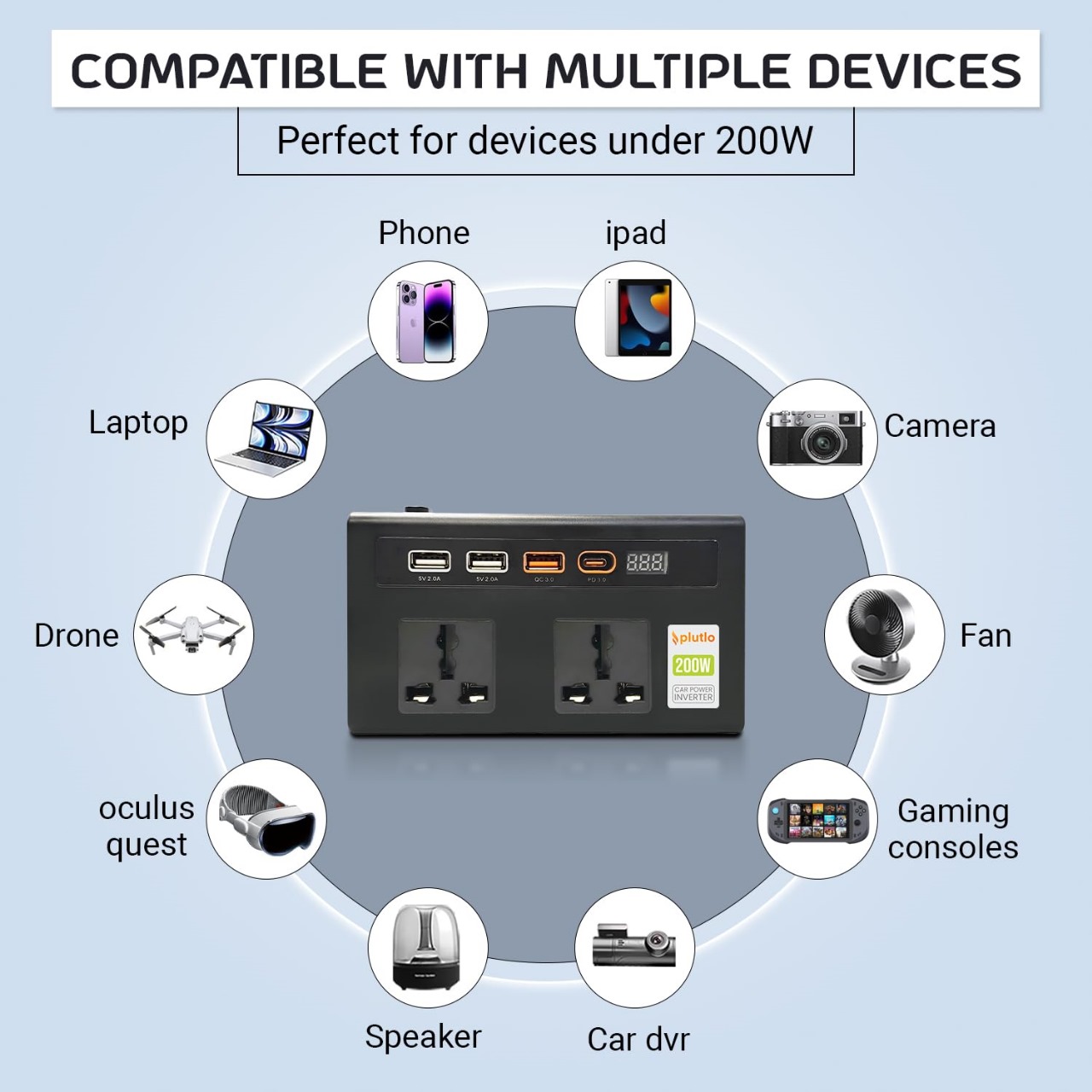 đĨ 200W High Power Car Inverter â Smart Charging Solution